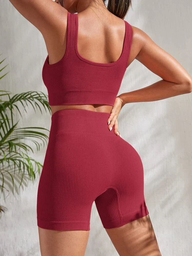 Two-piece women's fitness set with shorts & sports top – Sienna-Red-S-The Livary